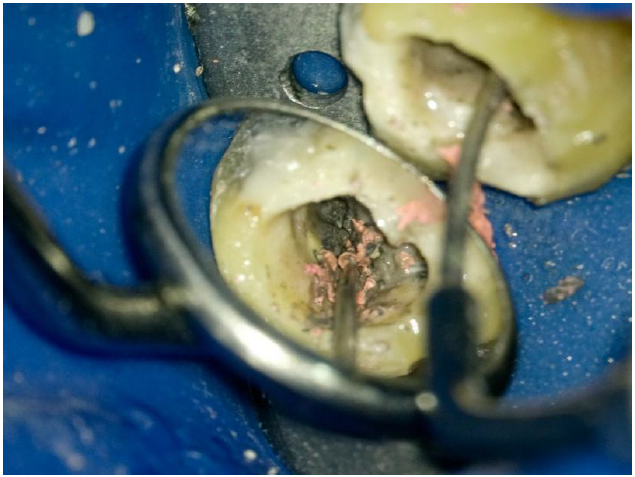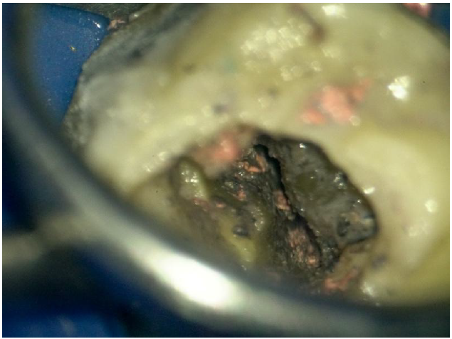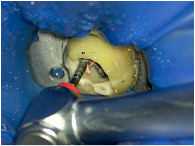 Aspect of the pulp chamber after removing the crown and coronal filling
